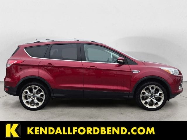 Ruby Red 2014 Ford Escape Titanium AWD 6-Speed Automatic EcoBoost 2.0L I4 GTDi DOHC Turbocharged VCT AWD, 10 Speakers, 3.51 Axle Ratio, 4-Wheel Disc Brakes, ABS brakes, Active Park Assist, Air Conditioning, Alloy wheels, AM/FM radio: SiriusXM, Auto-dimming Rear-View mirror, Automatic temperature control, Bi-Xenon High-Intensity Discharge Headlamps, BLIS w/Cross Traffic Alert, Brake assist, Bumpers: body-color, CD player, Compass, Delay-off headlights, Driver door bin, Driver vanity mirror, Dual front impact airbags, Dual front side impact airbags, Electronic Stability Control, Equipment Group 401A, Exterior Parking Camera Rear, Four wheel independent suspension, Front anti-roll bar, Front Bucket Seats, Front Center Armrest, Front dual zone A/C, Front fog lights, Front reading lights, Fully automatic headlights, Garage door transmitter, Heated door mirrors, Heated front seats, Heated Leather-Trimmed Buckets w/60/40 Rear Seat, Illuminated entry, Knee airbag, Leather Shift Knob, Low tire pressure warning, Memory seat, Navigation System, Occupant sensing airbag, Outside temperature display, Overhead airbag, Overhead console, Panic alarm, Passenger door bin, Passenger vanity mirror, Power door mirrors, Power driver seat, Power Liftgate, Power steering, Power windows, Radio data system, Radio: AM/FM Single CD/MP3, Rain-Sensing Wipers, Rear anti-roll bar, Rear Parking Sensors, Rear reading lights, Rear seat center armrest, Rear window defroster, Rear window wiper, Remote keyless entry, Roof Cross Bars, Roof rack: rails only, Security system, Speed control, Speed-sensing steering, Split folding rear seat, Steering wheel mounted audio controls, SYNC w/MyFord Touch & SYNC Services, Tachometer, Telescoping steering wheel, Tilt steering wheel, Titanium Technology Package, Traction control, Trip computer, Turn signal indicator mirrors, Variably intermittent wipers, Wheels: 18" Sparkle Nickel Painted Aluminum, Wheels: 19" Alloy Luster Nickel, AWD.Recent Arrival!Awards: 2014 KBB