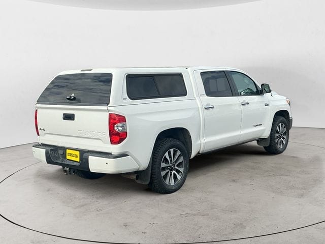 CARFAX One-Owner. Clean CARFAX. Super White 2018 Toyota Tundra Limited 4WD 6-Speed Automatic Electronic with Overdrive i-Force 5.7L V8 DOHC 32V LEV 4WD, Black Leather, 4-Wheel Disc Brakes, 4.30 Axle Ratio, 9 Speakers, ABS brakes, Air Conditioning, All Weather Floor Liner & Door Sill Protector Pkg, Alloy wheels, AM/FM radio: SiriusXM, Auto High-beam Headlights, Auto-dimming Rear-View mirror, Automatic temperature control, Blind Spot Monitor w/Rear Cross Traffic Alert, Brake assist, CD player, Color-Keyed Rear Bumper, Compass, Delay-off headlights, Driver door bin, Driver vanity mirror, Dual front impact airbags, Dual front side impact airbags, Electronic Stability Control, Entune App Suite, Exterior Parking Camera Rear, Front & Rear Parking Assist Sonar, Front anti-roll bar, Front Bucket Seats, Front Center Armrest, Front dual zone A/C, Front fog lights, Front reading lights, Front wheel independent suspension, Fully automatic headlights, Garage door transmitter: HomeLink, Glass Breakage Sensors (GBS), Heated door mirrors, Heated Front Bucket Seats, Heated front seats, Illuminated entry, Illuminated Entry System, Knee airbag, Leather Seat Trim (LB), Limited Premium Package, Low tire pressure warning, Navigation System, Occupant sensing airbag, Outside temperature display, Overhead airbag, Overhead console, Panic alarm, Passenger door bin, Passenger vanity mirror, Power door mirrors, Power driver seat, Power passenger seat, Power steering, Power Tilt & Slide Moonroof w/Sliding Sunshade, Power windows, Power Windows w/Front Auto Up/Down, Radio data system, Radio: Entune AM/FM/HD w/CD Player, Radio: Entune Premium w/JBL Audio & Navigation, Rear reading lights, Rear seat center armrest, Rear step bumper, Rear window defroster, Remote keyless entry, Security system, SIRIUSXM Satellite Radio, Speed control, Speed-sensing steering, Split folding rear seat, Steering wheel mounted audio controls, Tachometer, Telescoping steering wheel, Tilt steering wheel, Traction control, T