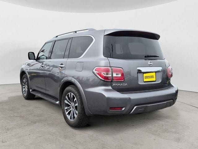 Gun Metallic 2019 Nissan Armada SL 4WD 7-Speed Automatic 5.6L V8 DOHC 32V Endurance 4WD, 13 Speakers, 2.937 Axle Ratio, 2nd & 3rd Row Carpeted Mats, 3rd row seats: split-bench, 4-Wheel Disc Brakes, ABS brakes, Air Conditioning, Alloy wheels, AM/FM radio: SiriusXM, Anti-whiplash front head restraints, Auto tilt-away steering wheel, Auto-dimming door mirrors, Auto-dimming Rear-View mirror, Auto-leveling suspension, Automatic temperature control, Blind Spot Warning, Brake assist, Bumpers: body-color, CD player, Delay-off headlights, Driver door bin, Driver vanity mirror, Dual front impact airbags, Dual front side impact airbags, Electronic Stability Control, Emergency communication system: NissanConnect Services, Four wheel independent suspension, Front anti-roll bar, Front Bucket Seats, Front Center Armrest, Front dual zone A/C, Front fog lights, Front reading lights, Fully automatic headlights, Garage door transmitter: HomeLink, Heated door mirrors, Heated Front Bucket Seats w/Driver Memory, Heated front seats, Illuminated entry, Intelligent Back-Up Intervention (I-BI), Intelligent Distance Control (I-DC), Leather Shift Knob, Leather-Appointed Seat Trim, Low tire pressure warning, Memory seat, Navigation System, Occupant sensing airbag, Outside temperature display, Overhead airbag, Overhead console, Panic alarm, Passenger door bin, Passenger vanity mirror, Power door mirrors, Power driver seat, Power Liftgate, Power passenger seat, Power Sliding Moonroof w/Front Tilt & Rear Slide, Power steering, Power windows, Premium Package, Radio data system, Radio: AM/FM/SXM/CD/MP3/HD, Rain sensing wipers, Rear air conditioning, Rear anti-roll bar, Rear Cross Traffic Alert (RCTA), Rear reading lights, Rear seat center armrest, Rear window defroster, Rear window wiper, Reclining 3rd row seat, Remote keyless entry, Roof rack: rails only, Security system, Speed control, Speed-sensing steering, Speed-Sensitive Wipers, Split folding rear seat, Spoiler, Steering wheel memory, Steering