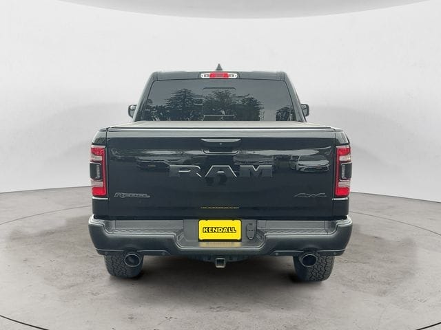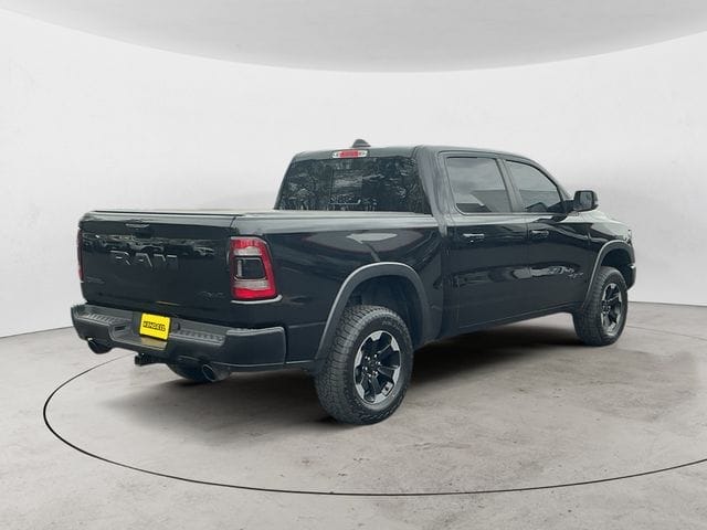 Clean CARFAX. Diamond Black 2019 Ram 1500 Rebel 4WD 8-Speed Automatic HEMI 5.7L V8 Multi Displacement VVT 1-Year SiriusXM Radio Service, 115V Auxiliary Rear Power Outlet, 2 USB Full Function/Charge Only Media Hub, 3.92 Rear Axle Ratio, 4-Wheel Disc Brakes, 48V Belt Starter Generator, 6 Speakers, 8.4" Touchscreen Display, 9 Amplified Speakers w/Subwoofer, ABS brakes, Air Conditioning, Air Conditioning ATC w/Dual Zone Control, Alloy wheels, AM/FM radio: SiriusXM, Apple CarPlay, Auto-Dimming Exterior Driver Mirror, Auto-Dimming Rear-View Mirror, Body Color Door Handles, Brake assist, Cloth/Vinyl Low Back Bucket Seats, Compass, Delay-off headlights, Driver door bin, Dual front impact airbags, Dual front side impact airbags, Electronic Stability Control, Exterior Mirrors Courtesy Lamps, Exterior Mirrors w/Supplemental Signals, Foam Bottle Insert (Door Trim Panel), For More Info, Call 800-643-2112, Front anti-roll bar, Front Bucket Seats, Front Center Armrest w/Storage, Front fog lights, Front reading lights, Front wheel independent suspension, Fully automatic headlights, Google Android Auto, GPS Antenna Input, Heated door mirrors, Heated Front Seats, Heated Steering Wheel, Illuminated entry, Integrated Center Stack Radio, Leather steering wheel, Low tire pressure warning, Manufacturer's Statement of Origin, Occupant sensing airbag, Outside temperature display, Overhead airbag, Overhead console, Panic alarm, ParkSense Front/Rear Park Assist w/Stop, ParkView Rear Back-Up Camera, Passenger door bin, Passenger vanity mirror, Power Adjustable Pedals, Power door mirrors, Power driver seat, Power Heated Fold Away Mirrors, Power steering, Power windows, Power-Folding Mirrors, Quick Order Package 25W Rebel, Radio data system, Radio: Uconnect 3 w/5" Display, Radio: Uconnect 4 w/8.4" Display, Rain Sensitive Windshield Wipers, Rear anti-roll bar, Rear Dome w/On/Off Switch Lamp, Rear seat center armrest, Rear step bumper, Rear Underseat Compartment Storage, Rear Window Defroster, Reb
