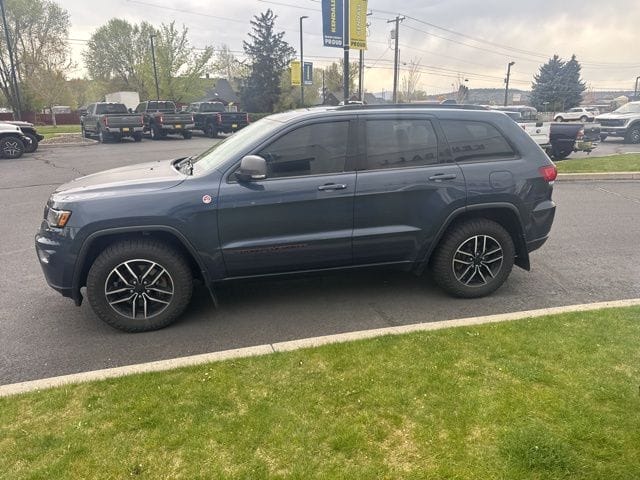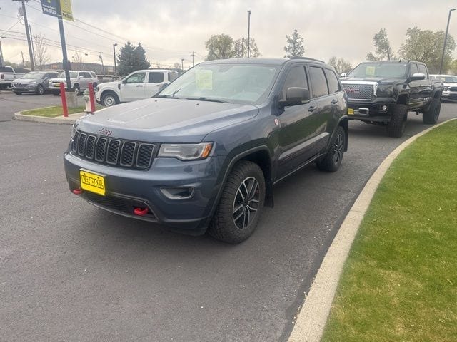 Pacific Blue Clearcoat 2020 Jeep Grand Cherokee Trailhawk 4WD 8-Speed Automatic 5.7L V8 HEMI 4WD, 1-Year SiriusXM Guardian Trial, 10 Speakers, 4-Wheel Disc Brakes, 4G LTE Wi-Fi Hot Spot, 8.4" Touchscreen Display, ABS brakes, Air Conditioning, Alloy wheels, AM/FM radio: SiriusXM, Anti-whiplash front head restraints, Apple CarPlay, Apple CarPlay/Android Auto, Audio memory, Auto High Beam Headlamp Control, Auto-dimming door mirrors, Auto-dimming Rear-View mirror, Auto-leveling suspension, Automatic temperature control, Bi-Xenon High-Intensity Discharge Headlamps, Brake assist, Bumpers: body-color, Cargo Compartment Cover, Compass, Delay-off headlights, Driver door bin, Driver vanity mirror, Dual front impact airbags, Dual front side impact airbags, Dual-Pane Panoramic Sunroof, Electronic Stability Control, Emergency communication system: SiriusXM Guardian, Four wheel independent suspension, Front anti-roll bar, Front Bucket Seats, Front Center Armrest w/Storage, Front dual zone A/C, Front fog lights, Front LED Fog Lamps, Front License Plate Bracket, Front reading lights, Fully automatic headlights, Garage door transmitter, Google Android Auto, GPS Antenna Input, GPS Navigation, HD Radio, Heated door mirrors, Heated front seats, Heated rear seats, Heated steering wheel, Illuminated entry, Integrated Center Stack Radio, Integrated Voice Command w/Bluetooth, Knee airbag, Leather Shift Knob, LED Daytime Running Headlamps, Low tire pressure warning, Memory seat, Navigation System, Normal Duty Suspension - Increased Travel, Occupant sensing airbag, Outside temperature display, Overhead airbag, Overhead console, Panic alarm, ParkView Rear Back-Up Camera, Passenger door bin, Passenger vanity mirror, Power door mirrors, Power driver seat, Power Liftgate, Power moonroof, Power passenger seat, Power steering, Power Tilt/Telescope Steering Column, Power windows, Premium Lighting Group, Quick Order Package 22J, Radio data system, Radio: Uconnect 4C Nav w/8.4" Display, Rain Sensitiv