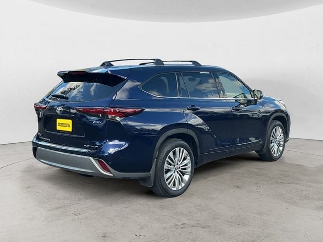 CARFAX One-Owner. Clean CARFAX. Blueprint 2025 Toyota Highlander Hybrid Platinum AWD eCVT 2.5L I4 PDI Hybrid DOHC 16V LEV3-SULEV30 2.5L I4 PDI Hybrid DOHC 16V LEV3-SULEV30, 11 Speakers, 20" Alloy Wheels, 3rd row seats: split-bench, 4-Wheel Disc Brakes, ABS brakes, Air Conditioning, Alloy wheels, AM/FM radio: SiriusXM, Apple CarPlay/Android Auto, Auto High-beam Headlights, Auto-dimming Rear-View mirror, Automatic temperature control, Brake assist, Bumpers: body-color, Delay-off headlights, Driver door bin, Driver vanity mirror, Dual front impact airbags, Dual front side impact airbags, Electronic Inner Mirror, Electronic Stability Control, Emergency communication system: Safety Connect (up to 10-year trial subscription), Exterior Parking Camera Rear, Four wheel independent suspension, Front anti-roll bar, Front Bucket Seats, Front Center Armrest, Front dual zone A/C, Front fog lights, Front reading lights, Fully automatic headlights, Garage door transmitter: HomeLink, Heads-Up Display, Heated and Ventilated Front Bucket Seats, Heated door mirrors, Heated front seats, Heated rear seats, Heated steering wheel, High Grade LED, Illuminated entry, Knee airbag, Leather Seat Trim, Leather Shift Knob, Leather steering wheel, Low tire pressure warning, Memory seat, Navigation system: Drive Connect Cloud Navigation (1-year trial subscription), Occupant sensing airbag, Outside temperature display, Overhead airbag, Overhead console, Panic alarm, Panoramic Sunroof and Moonroof, Panoramic View Monitor, Passenger door bin, Passenger vanity mirror, Power door mirrors, Power driver seat, Power Liftgate, Power moonroof, Power passenger seat, Power steering, Power windows, Radio: 12.3" Toyota Audio Multimedia with JBL Premium Audio, Rain sensing wipers, Rear air conditioning, Rear anti-roll bar, Rear reading lights, Rear window defroster, Rear window wiper, Reclining 3rd row seat, Remote keyless entry, Security system, Speed control, Speed-sensing steering, Split folding rear seat, Spo